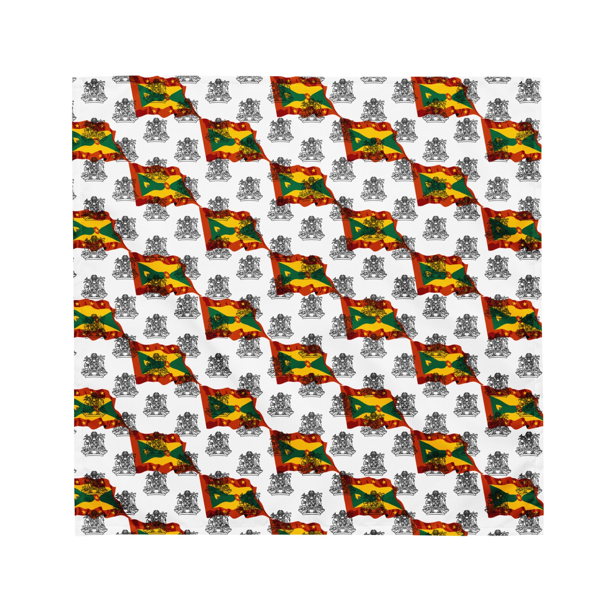 Featuring an intricate design inspired by Grenada's national colors and iconic symbols, this bandana captures the spirit of independence and resilience that defines the Grenadian people. Whether you're hitting the streets or lounging by the beach, let your style speak volumes with our Grenadian Pride Bandana #4.